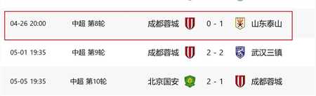 在4月26日,中超第8轮里面,成都蓉城是0比1不敌山东泰山,在8月17日的中超第23轮,山东泰山是3比0大胜成都蓉城。