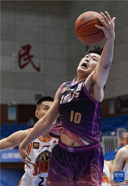 11月13日,吉林九台农商银行队球员赵嘉浩(右)在比赛中上篮。新华社记者 朱峥 摄