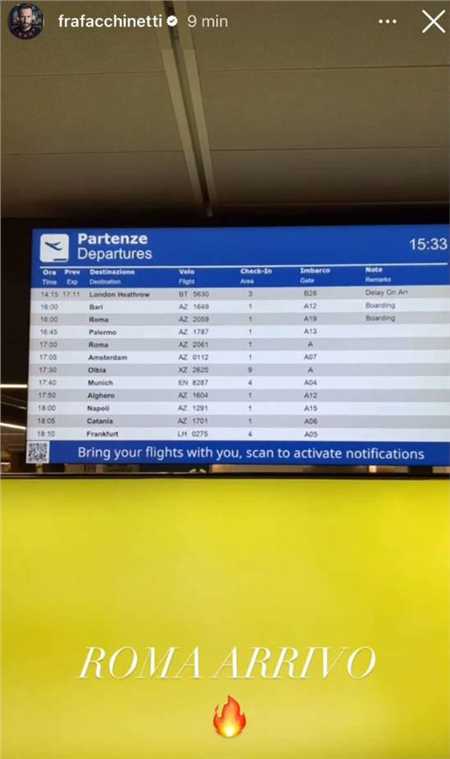 当地时间1月25日, 卡萨代伊 的经纪人之一francesco facchinetti在社交媒体上晒出了自己抵达罗马的照片,并且配文:“抵达罗马”。