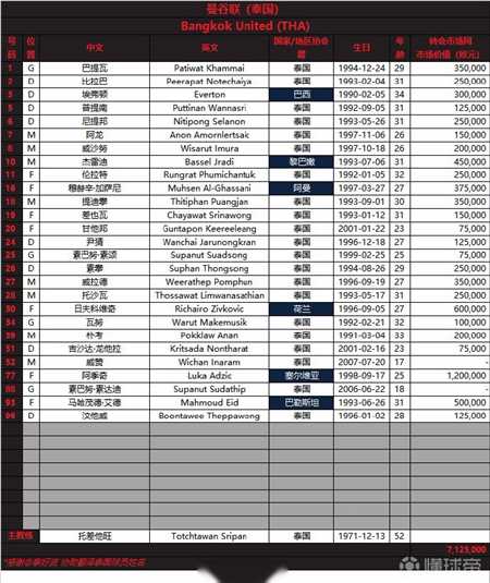 德转亚洲区管理员朱艺 @asaikana 公布了泰国 曼谷联亚冠精英联赛附加赛报名名单。